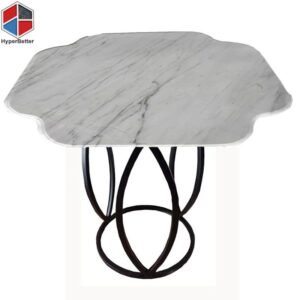 | Simple marble table top with simple metal base. | Marble table top and metal base can be matched at randon. | White marble top with stainless stell trim and other metal base. |