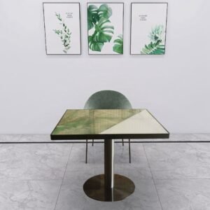 Everything can be choosed.You can choose the materialf for table top and the style for base and chair to design your imaged furniture.
